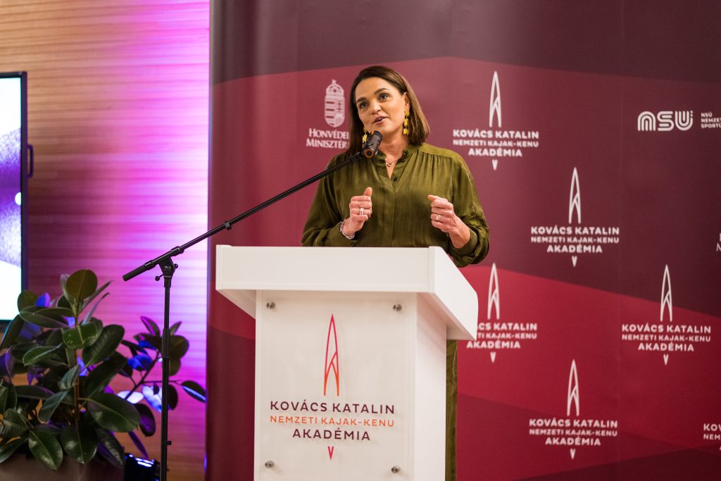 Kovács Katalin, Akadémiánk elnökasszonya megható gondolatokat adott át a fiataloknak. A sportág háromszoros olimpiai bajnoka kiemelte, amikor megszületett az Akadémia gondolata egy cél lebegett a szeme előtt: szeretne visszaadni annak a sportágnak, amely által ő „emberré” vált.